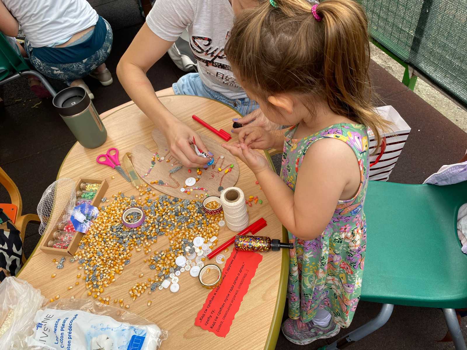 U našem objektu Korak po Kora 2 u ulici Prve pruge 44n roditelji i deca su dobili ceduljicu sa stihom neke dečije pesmice i na osnovu toga su trabali da naprave jednu sliku od prirodnih materijala. Prelepe slike su postavljene u hol naše Ustanove i na pravi način su upotpunile taj prostor, Dok su se u našem objektu Korak po korak 1 u ulici Plamira Toljatija 68a roditelji bavili reciklažom i od raznih ambalaža, kanapa, satenskih traka pravili različite figure, hranilice za ptice i ukrase koji su upotpunili naše dvorište.
